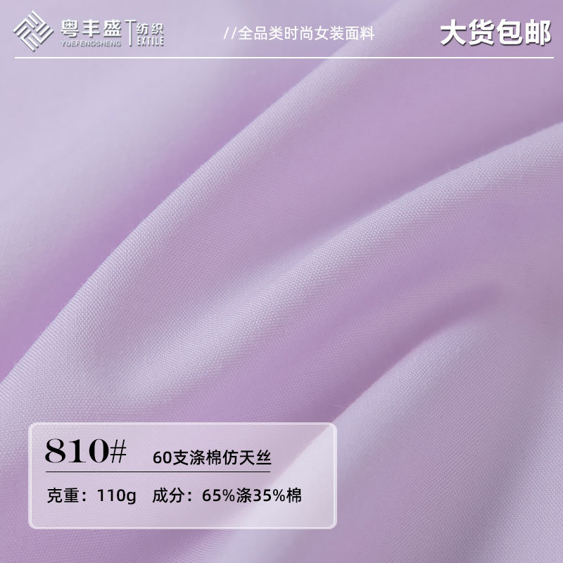60 カウントポリエステル綿模造テンセルシャツ生地抗シワ非弾性無地ポプリンドレスロリータポリエステル綿生地