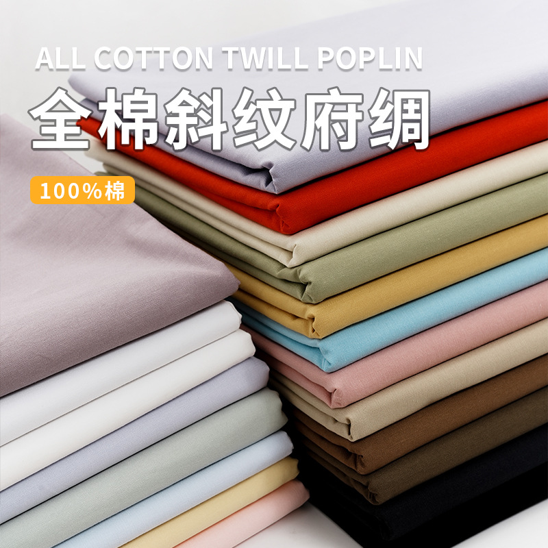 クロスボーダー純色全綿布模造天糸40本の細いツイル春のシャツパンツ綿生地斜仔130g