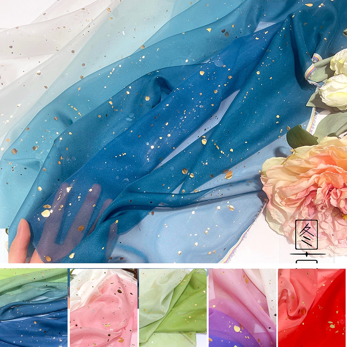 Tunan オリジナルホットスタンピンググラデーショントランジションカラーデジタルプリント生地漢服スカート子供服中国風の結婚式の生地
