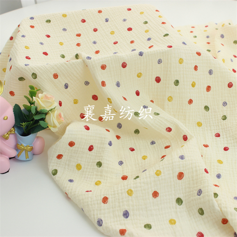 二重ガーゼ縮みの古典的な小さな波点生地の子供服パジャマ毛布生地