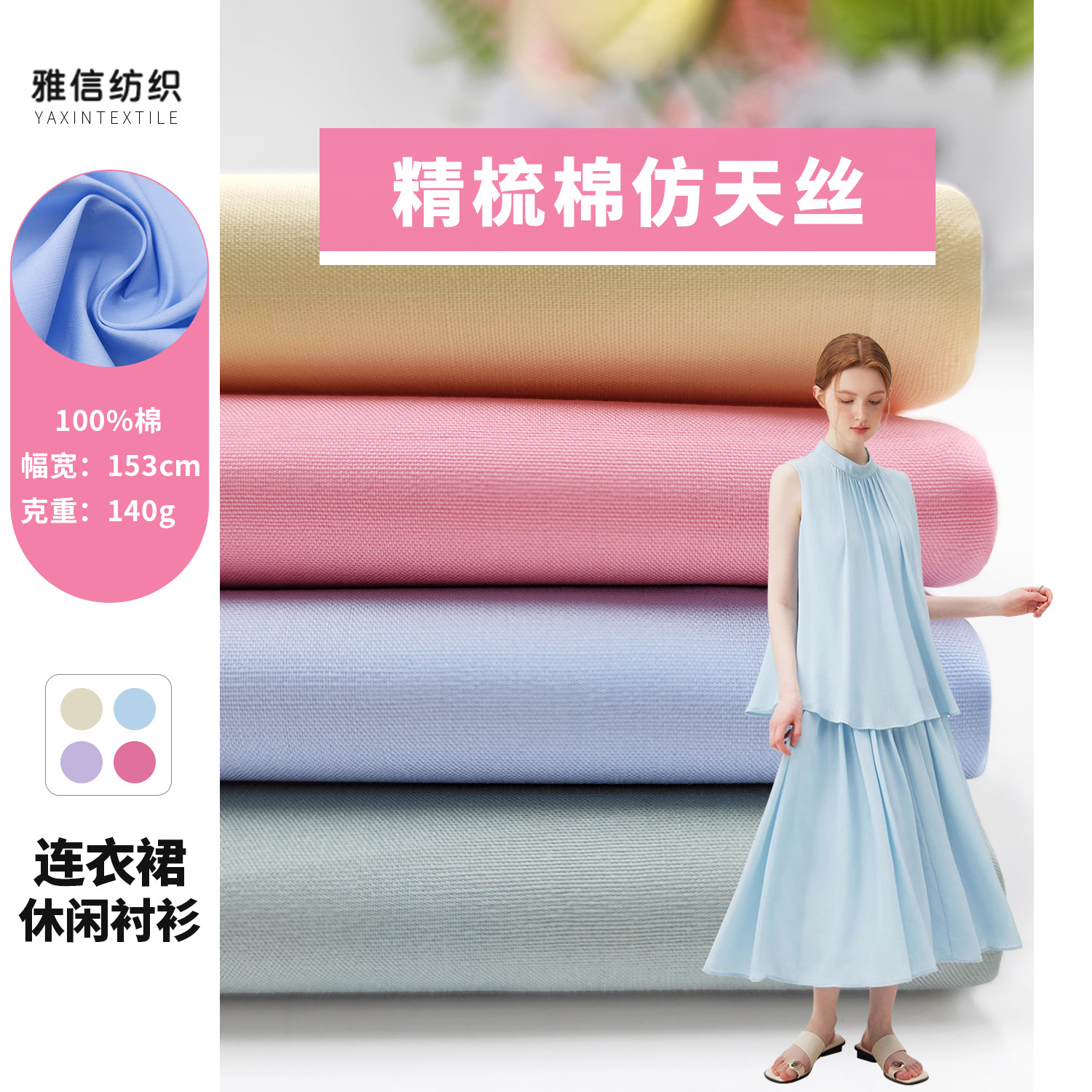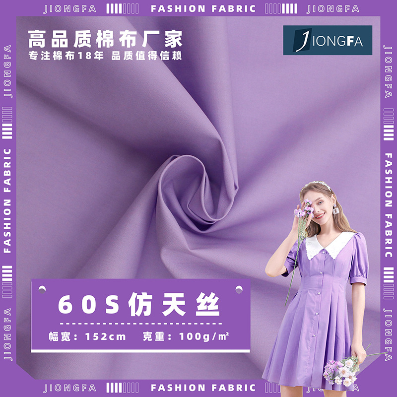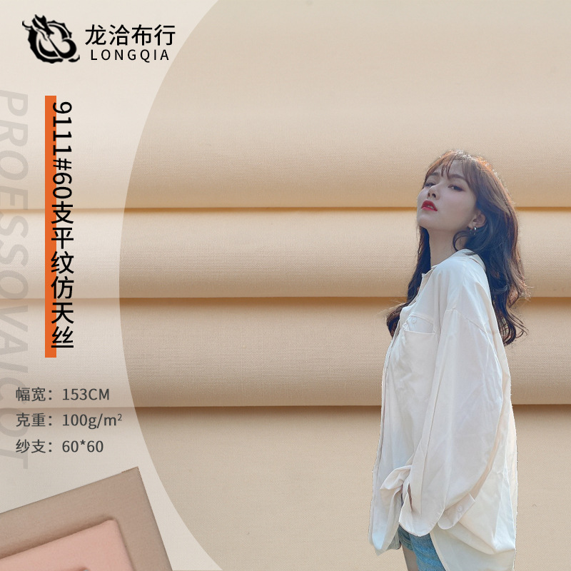 60番手平織り綿100% テンセル風 春夏用ポプリンシャツ生地 小清新シルク加工シリーズ