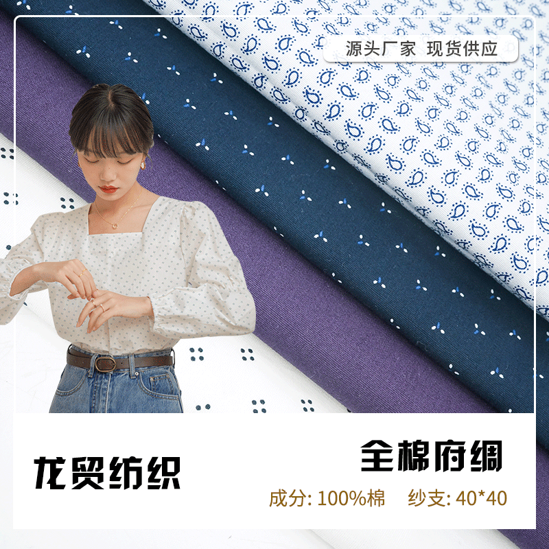 40S高密府シルクプリント生地活性プリント小砕花純綿生地ファッションカジュアルシャツ生地