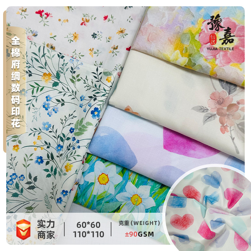 専門家が厳選した綿60番手ハイカウント高密度ポプリンデジタルプリント生地シャツ子供服ドレス生地
