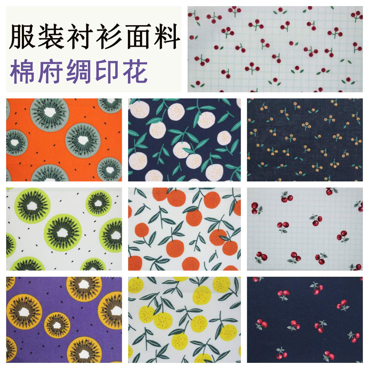 純綿現物プリント布卸売り清新果物活性プリント布子供服シャツ生地