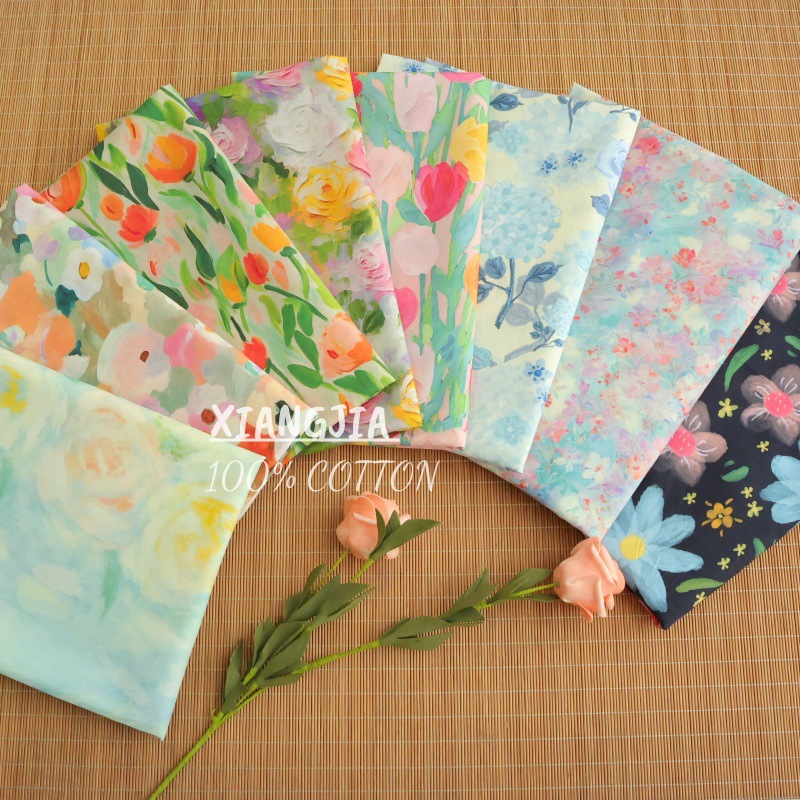 コーマ60ポプリン日本と韓国の油絵風生地気質花デジタルプリント子供服婦人服生地