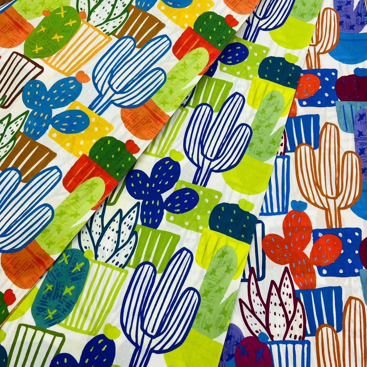 2024春夏棉模造天糸デジタルプリント簡単画サボテン女の子ワンピースキャミソール生地