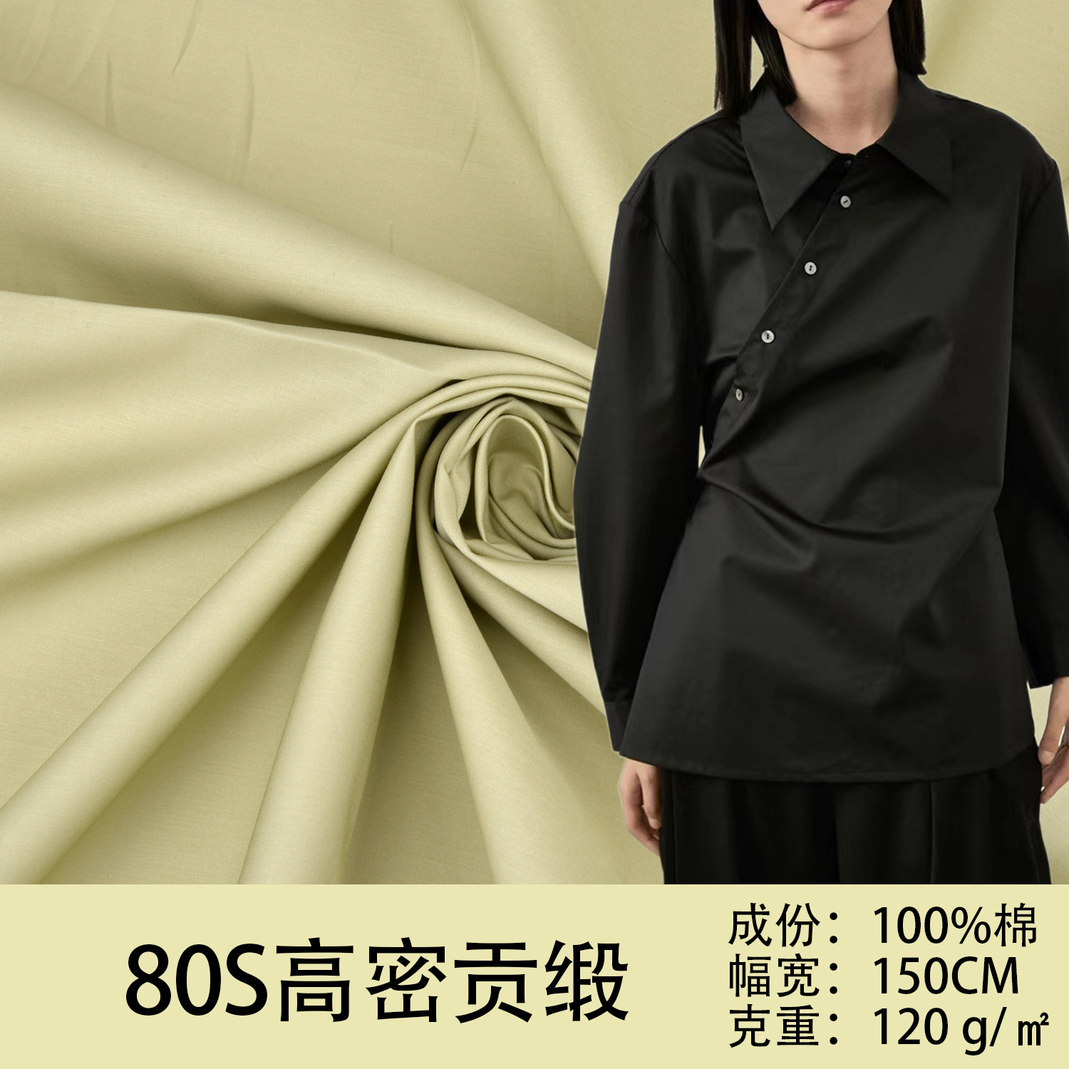 80s高支高密功サテンシャツ生地高級馬綿生地現物卸売り綿100% 液体アンモニアシルク