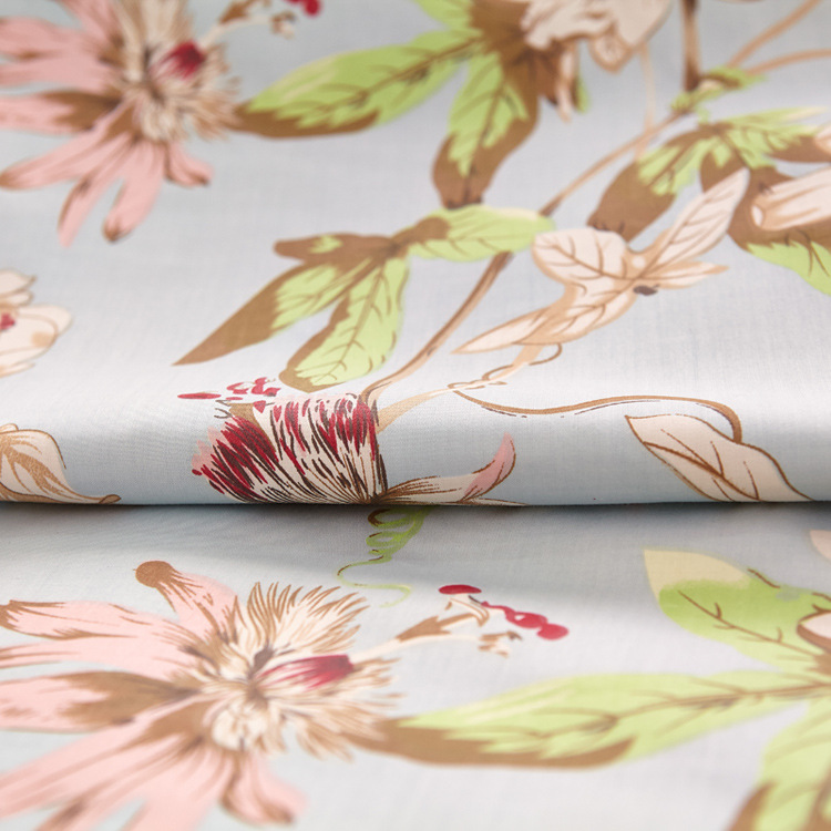 6291全工芸綿弾力功サテン白地清新大花プリント布綿服スーツ生地供給