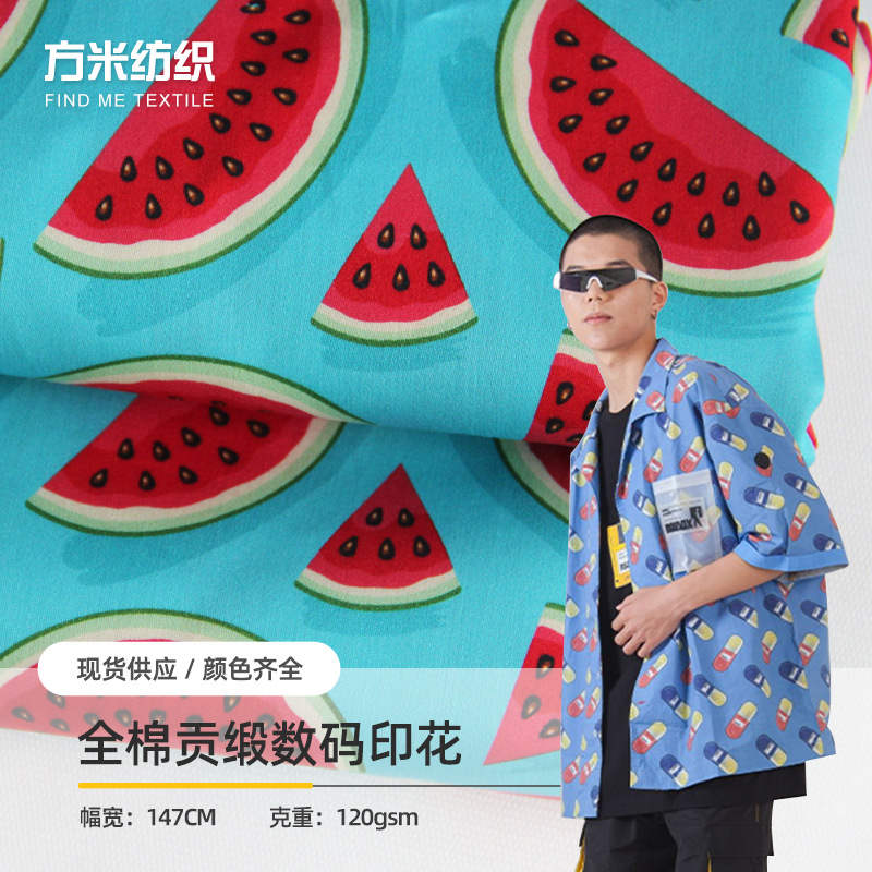 綿綿功サテン60sデジタルプリント生地ハワイ風メンズビーチパンツ子供服綿功サテン生地