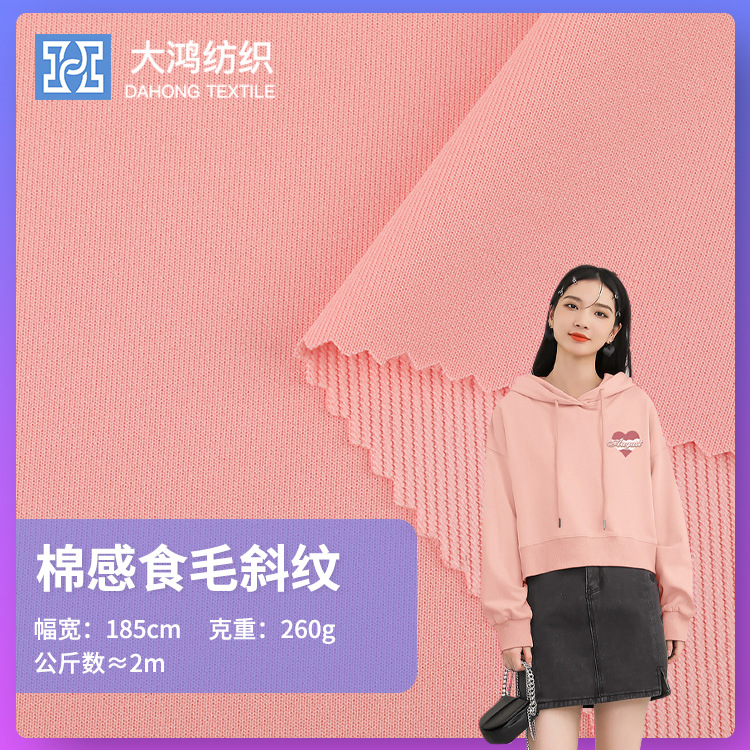32Sイミテーションコットン斜織ポリエステル・スパンデックス混紡スウェット生地260g伸縮性魚鱗布コットン風小毛圈布デジタルプリント