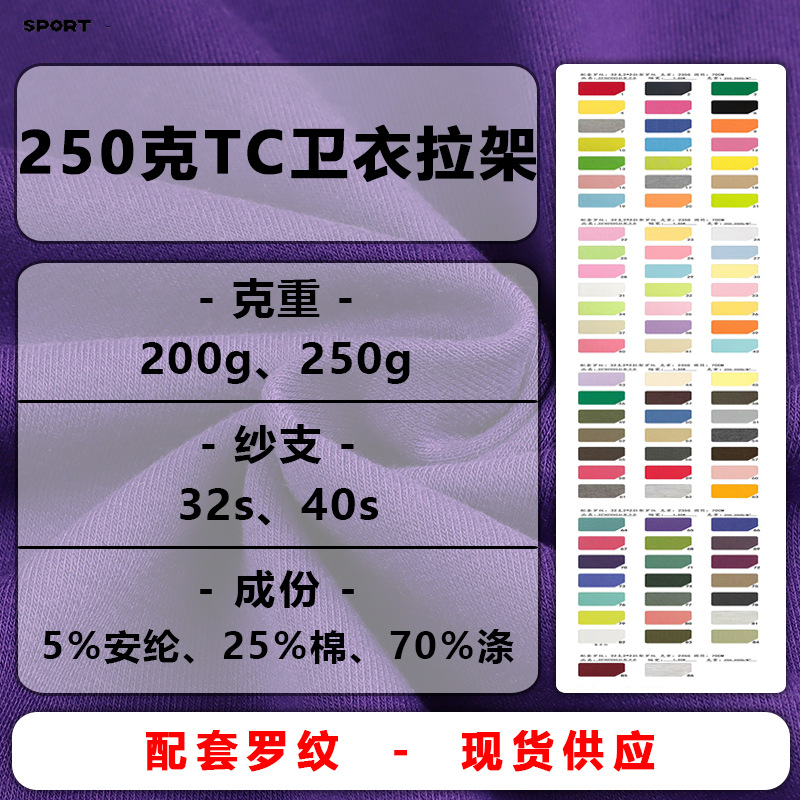 32本250グラムTCスウェットハンガーCVCウール生地弾力魚鱗布ポリエステル綿スパンデックスレジャーニット