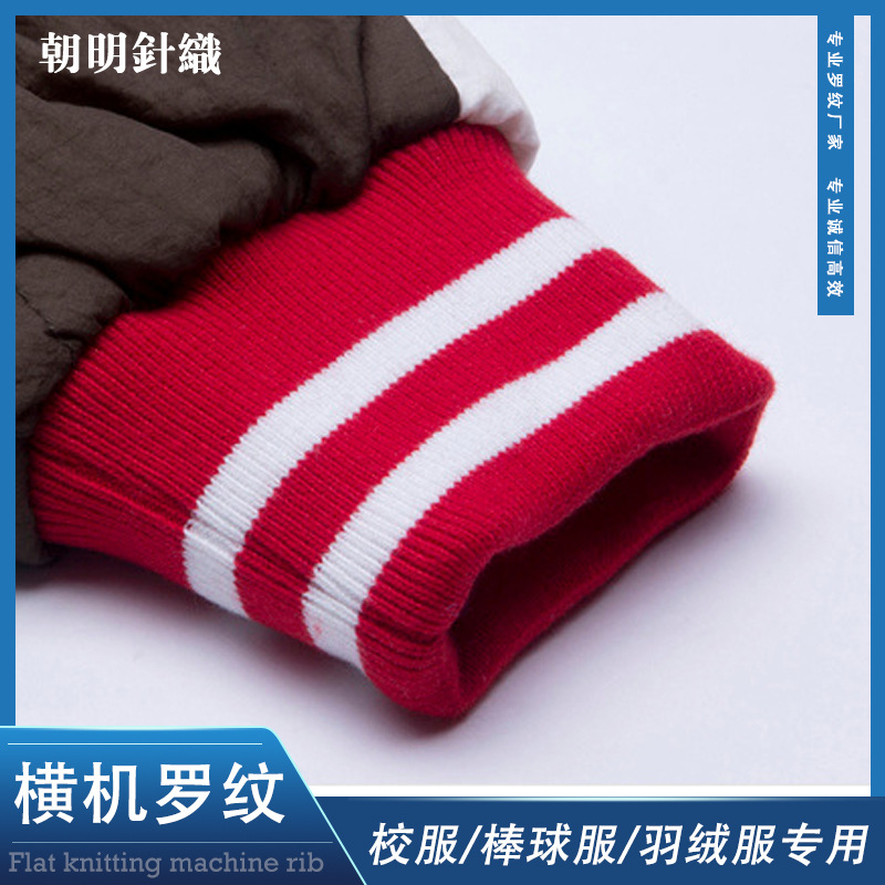 ストライプ弾性ニットリブ野球ユニフォームスウェットシャツダウンジャケットネジネックライン袖口裾横機リブ卸売
