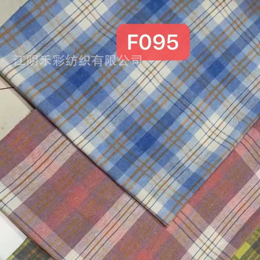 TCポリエステル綿色織布格子シャツズボン生地綿布片面磨毛21本