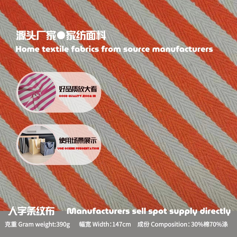 在庫あり 魚骨模様 ヘリンボーン模様 ストライプ生地 390g 糸染めポリエステル綿混紡ストライプ生地 ハンドバッグ ソファカバー用ストライプ生地
