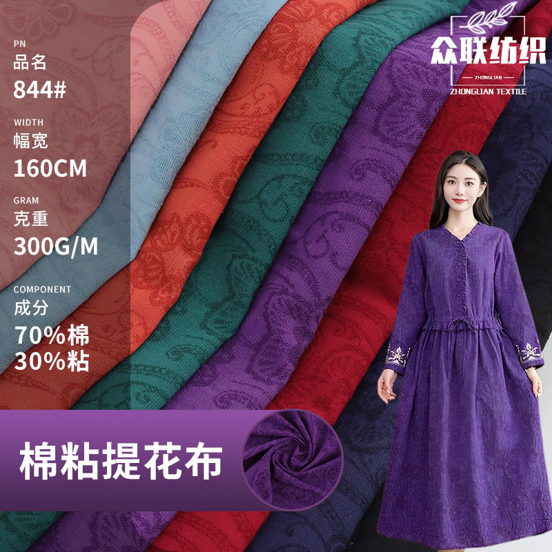 秋冬綿麻大ジャカード生地民族風チャイナドレスワンピース綿入れシャツセット植物ジャカード生地