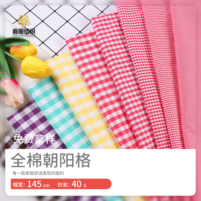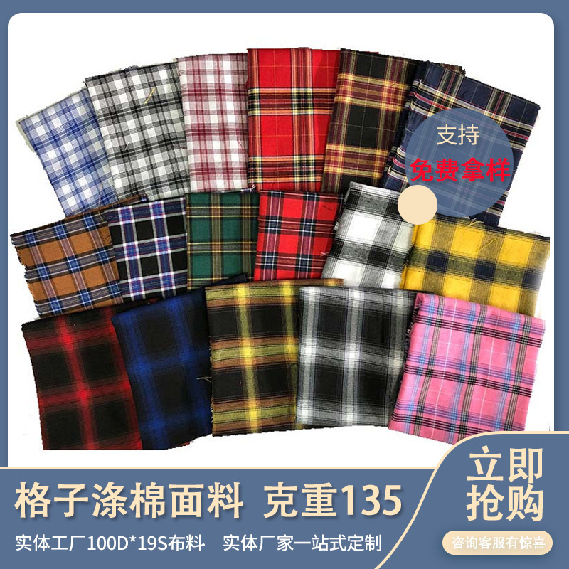 現物130グラムポリエステル綿格子布子供服生地21本平織りシャツ生地玩具装飾布