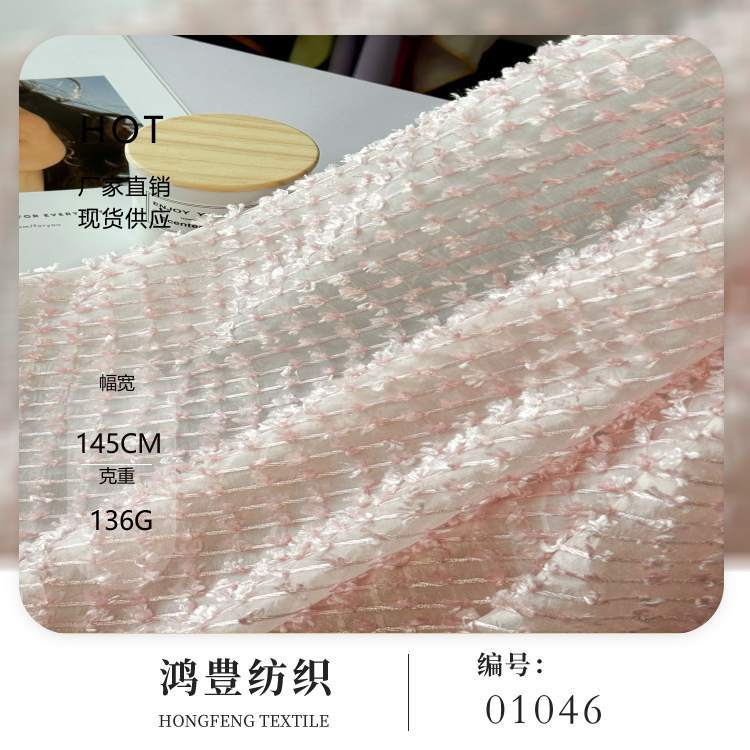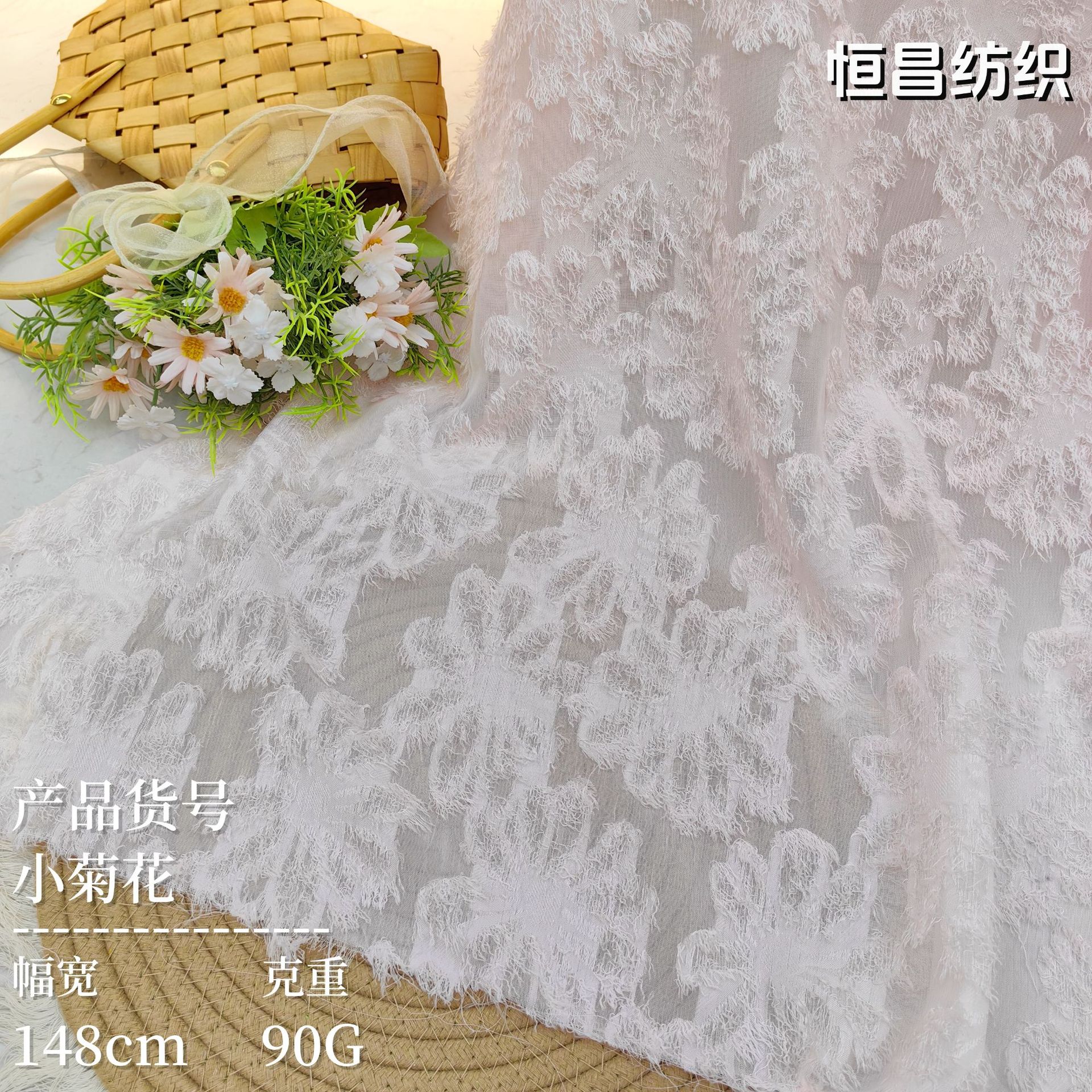 新商品136g布帛錦ポリエステルジャカード生地小清新透かし彫り毛シフォンの花の女性のワンピースの布地