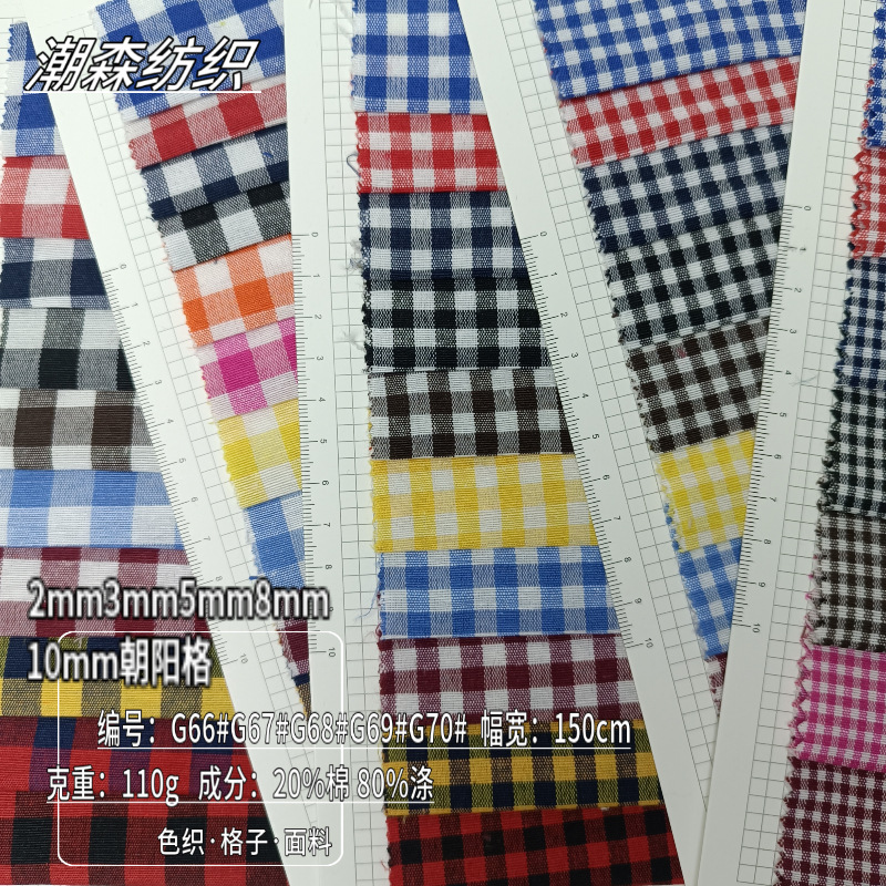 TC ポリエステル綿先染め朝陽チェック柄 2mm3mm5mm8mm10mm チェック柄シャツトップススカート子供服学生服生地