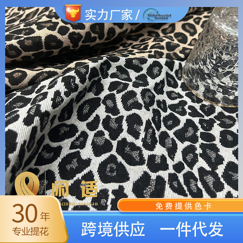 立体動物の紋様の不規則な図案豹点豹紋ポリエステル綿色織大ジャカードケース服装浮き彫り刺繍