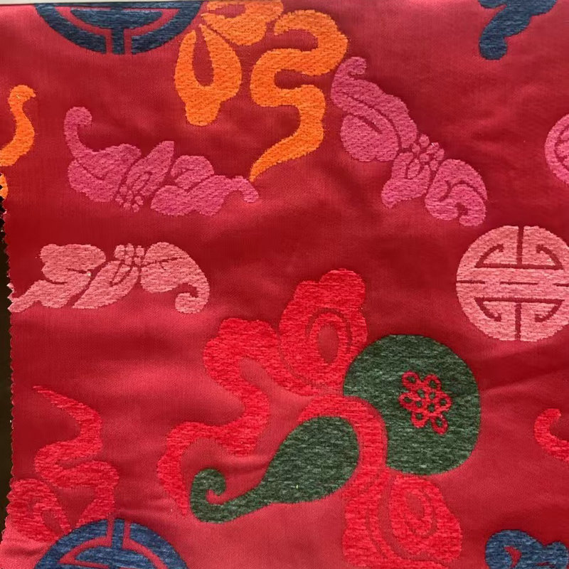 国風揺銭扇シェニール生地ジャカード生地新中国式古い銭風は二重服装生地を厚くした