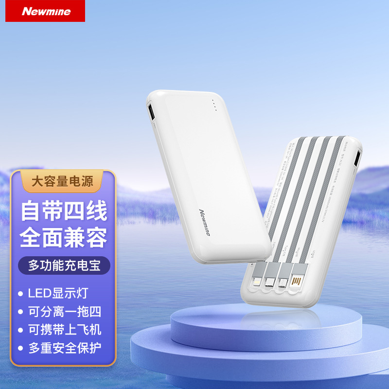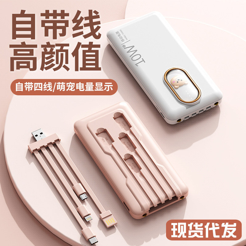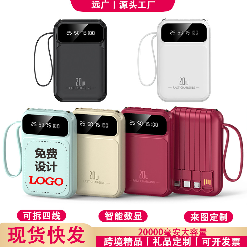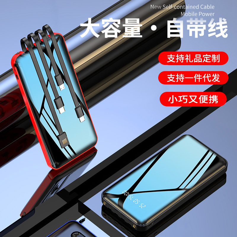 卸売り大容量充電宝20000ミリアンペア充電ミニ携帯セルフケーブル移動電源プレゼントカスタマイズ