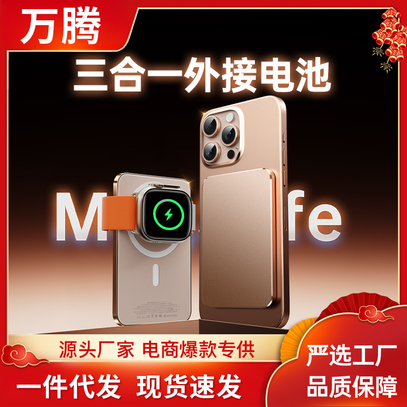 工场直贩 | 私模合金マグセーフマグネット吸い込みスリーインワン充电宝适用アップルウォッチモバイル电源