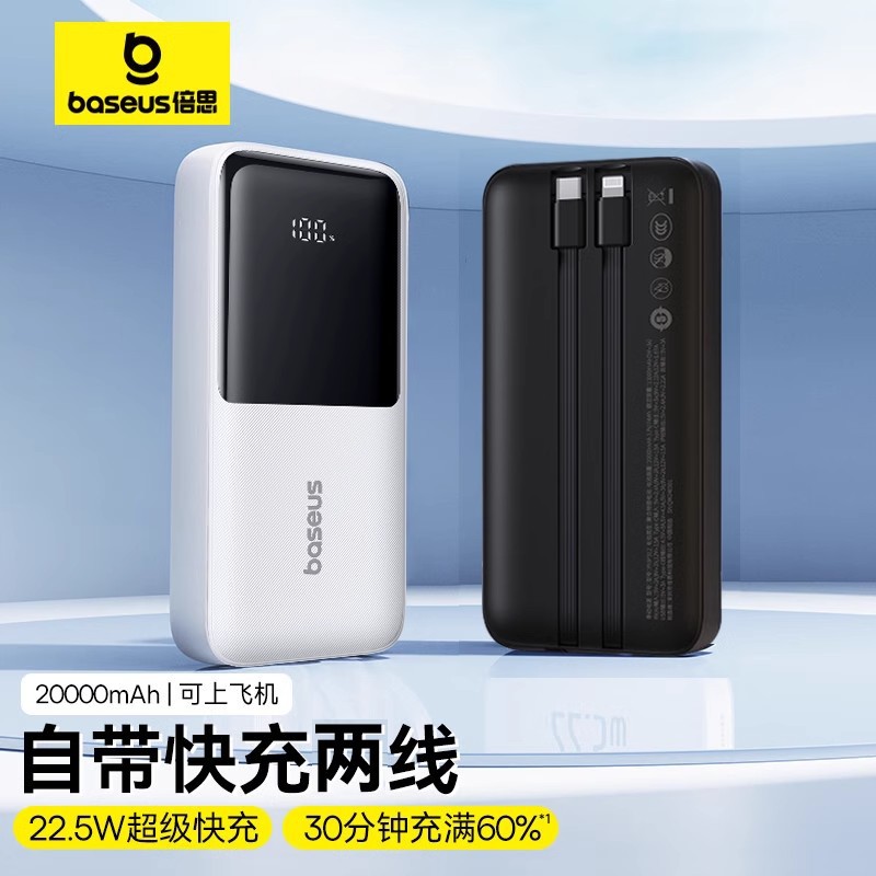 倍思極充自帯線充電宝20000ミリアンペア大容量超急速充電22.5w小型