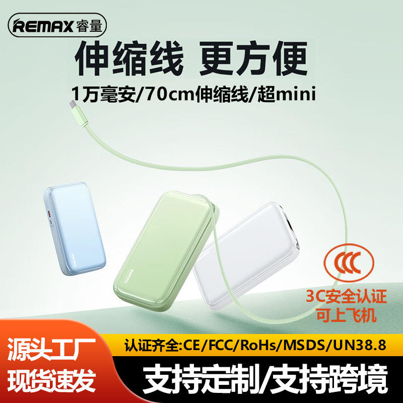 Remax内蔵ケーブル付きモバイルバッテリー 10000mAh 22.5W急速充電 Type-C伸縮ケーブル モバイル電源 3認証