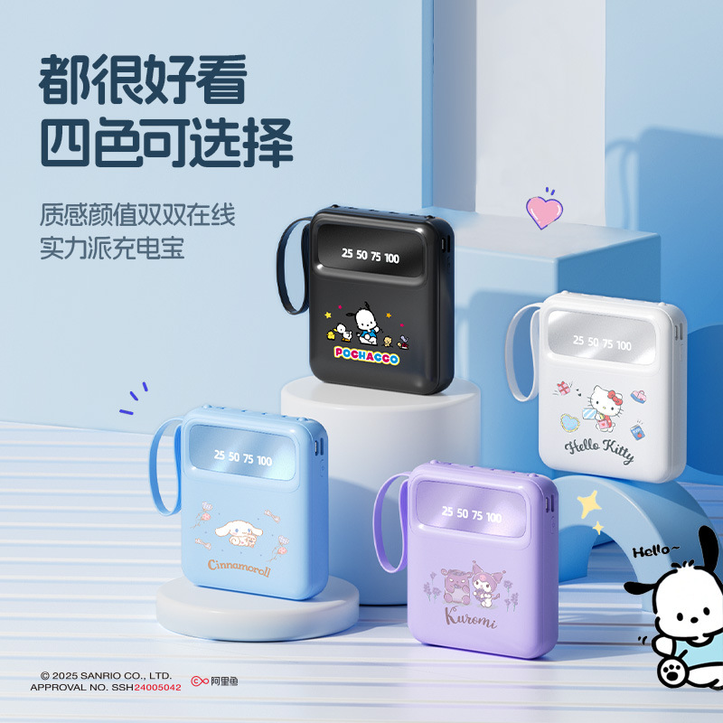 サンリオK106充電宝超薄型大容量セルフケーブル10000ミリアンペア移動電源急速充電コンパクト