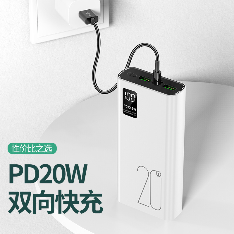 ミニ内蔵ケーブル付き20000mAhモバイルバッテリー大容量ポータブル超急速充電22.5Wモバイル電源卸売