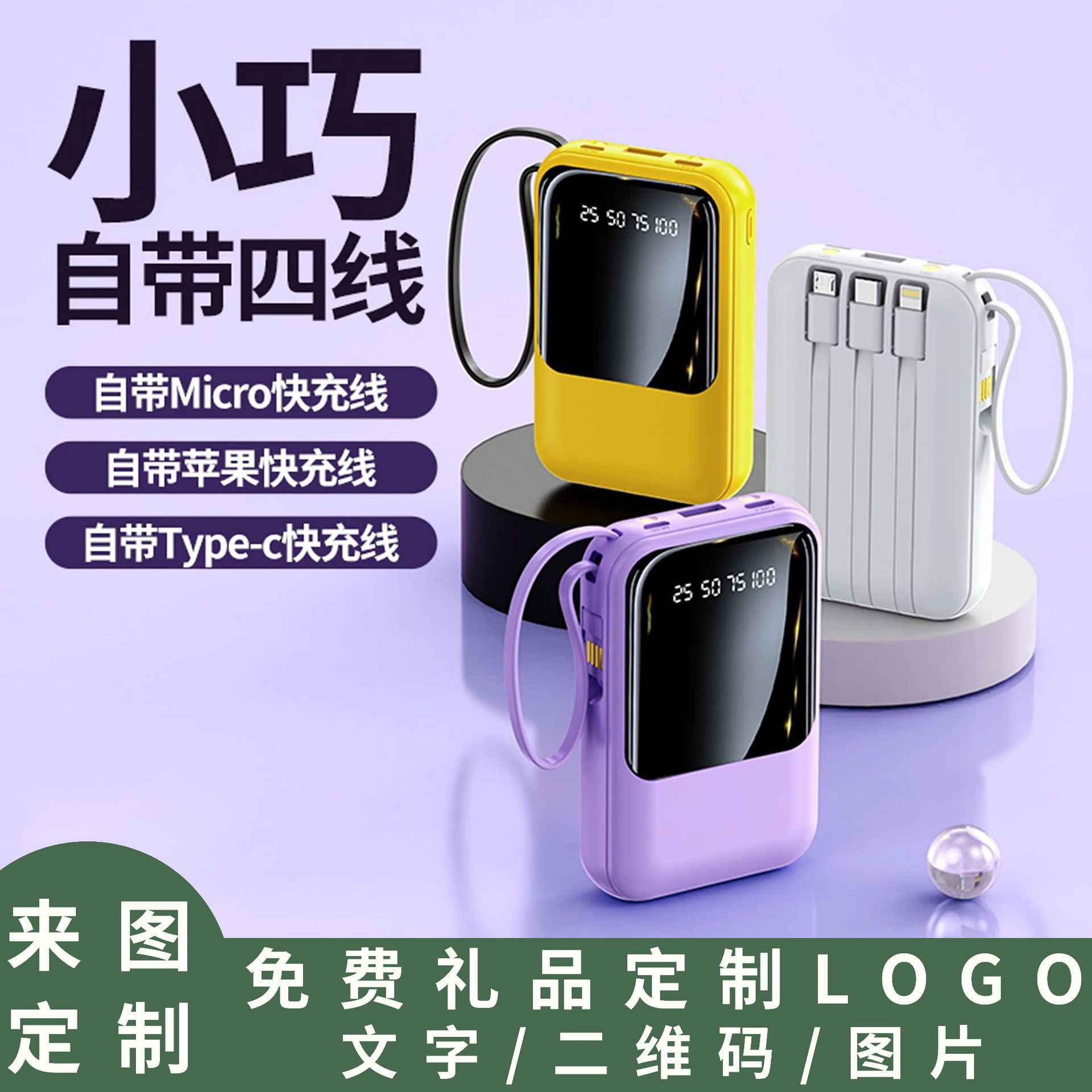 ミニ自帯線20000ミリアンペア大容量充電宝携帯快充移動電源創意プレゼント印刷