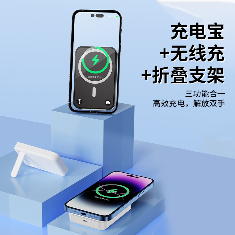 卸売超薄型マグセーフ磁気サクションスタンドワイヤレス充電宝10000ミリアンペア携帯電話ポータブルモバイル電源