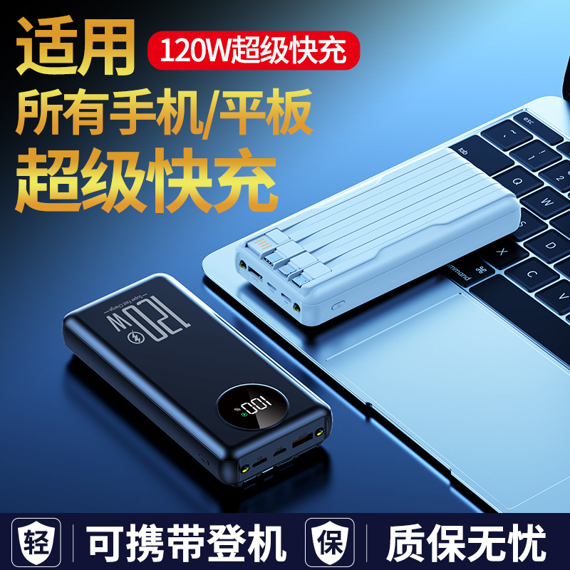 クロスボーダー120W超急速充電電気めっきデジタル表示20000ミリアンペア小型携帯型付属四線移動電源