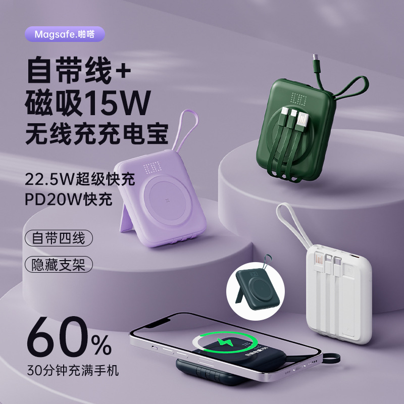 卸売りは四線磁気吸引無線充電宝10000ミリアンペアスタンドの便利な移動電源プレゼントを持ってカスタマイズした