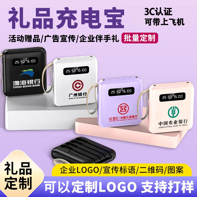 卸売ミニ自己完結型ラインパワーバンク大容量 20000 mAh クロスボーダーモバイルパワーギフトプリントロゴ