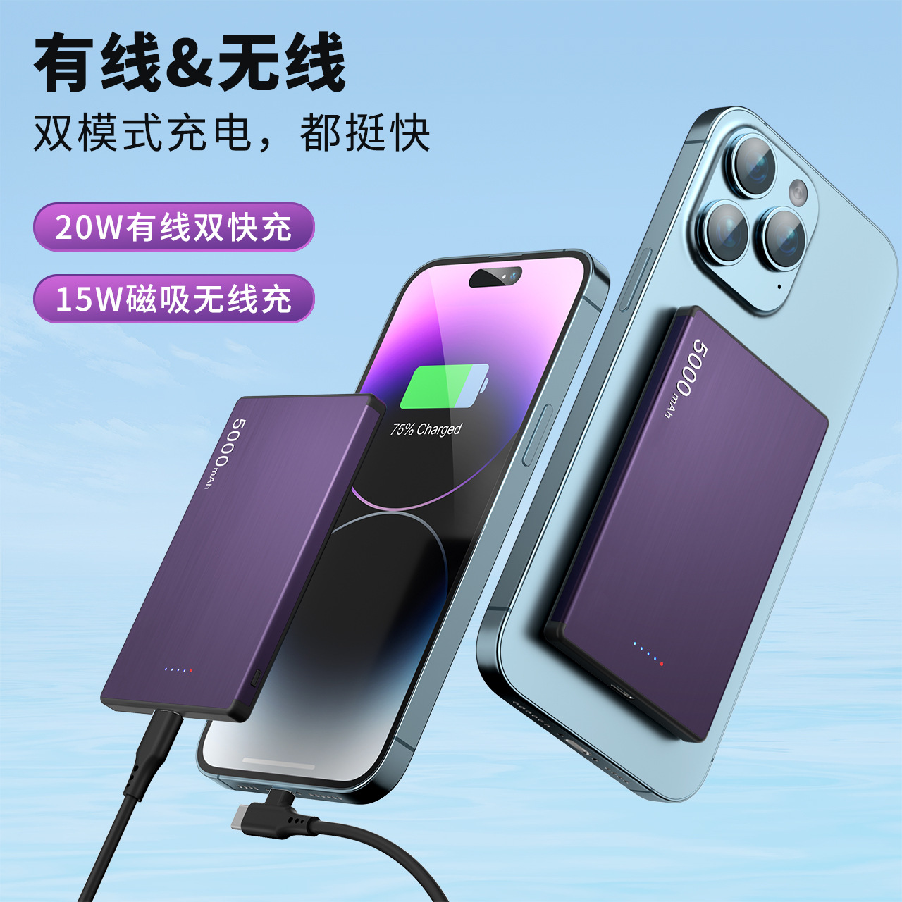 新製品マグネット式モバイル電源ミニ15wワイヤレス充電軽薄コンパクト5000ミリアンペアプレゼント充電宝