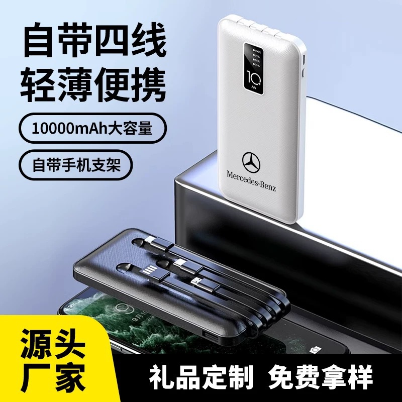 跨境定制3C认证自带线充电宝 迷你便携大容量移动电源工厂批发
