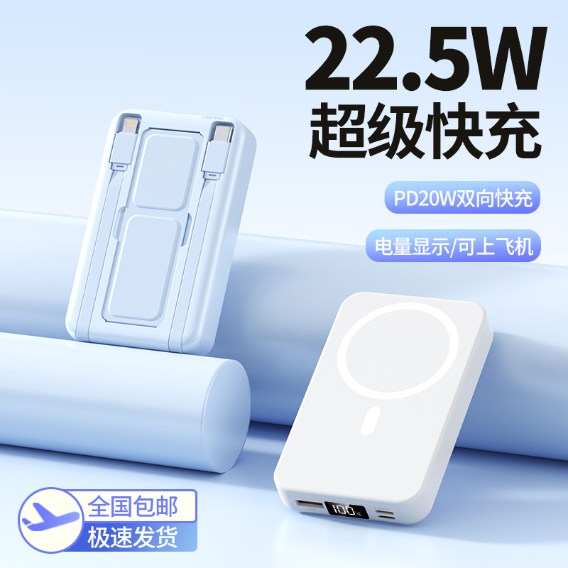 新型ミニ磁気吸引大容量充電宝magsafe自帯線可スタンド無線急速充電モバイル電源