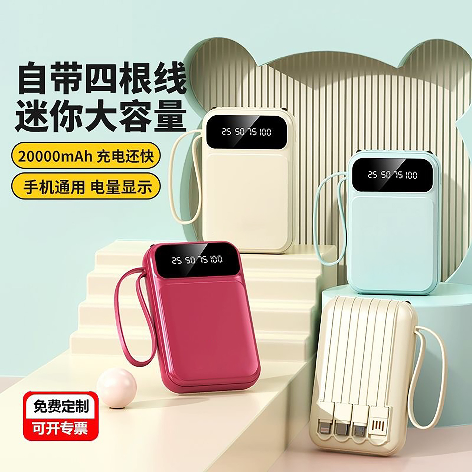 新型携帯ミニ充電宝快充帯線20000ミリアンペア超大容量薄型モバイル電源カスタマイズ