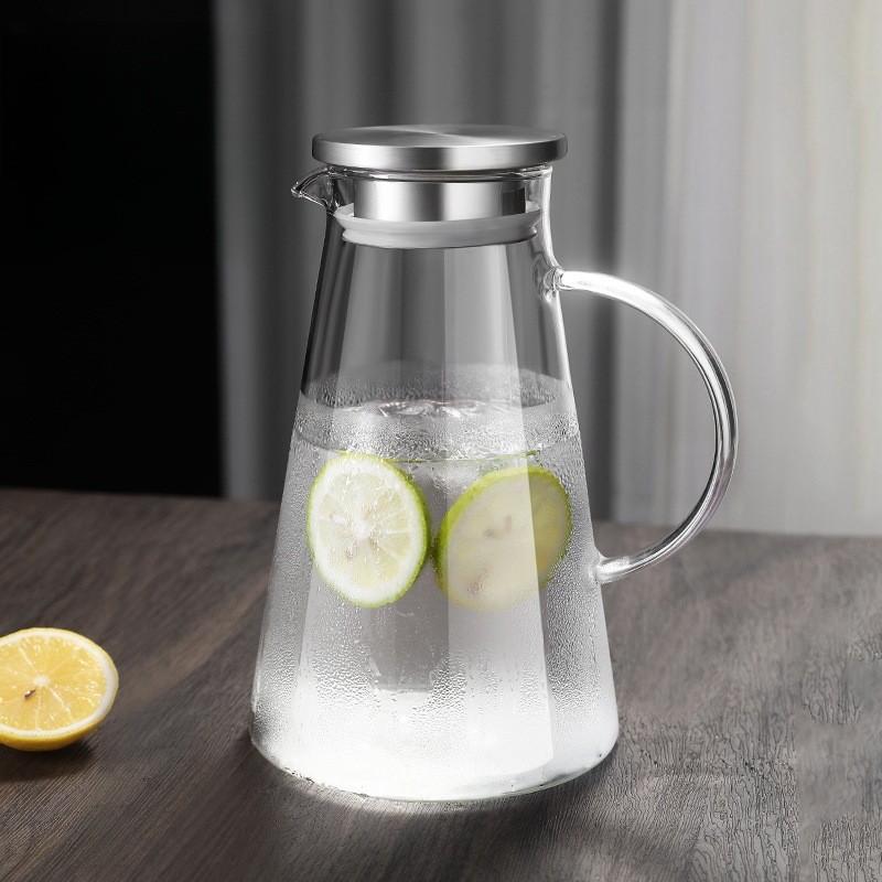 メーカー現物デンマーク風ソロ冷水筒ステンレス蓋高ホウ素シリコンガラス耐冷耐熱厚冷水筒