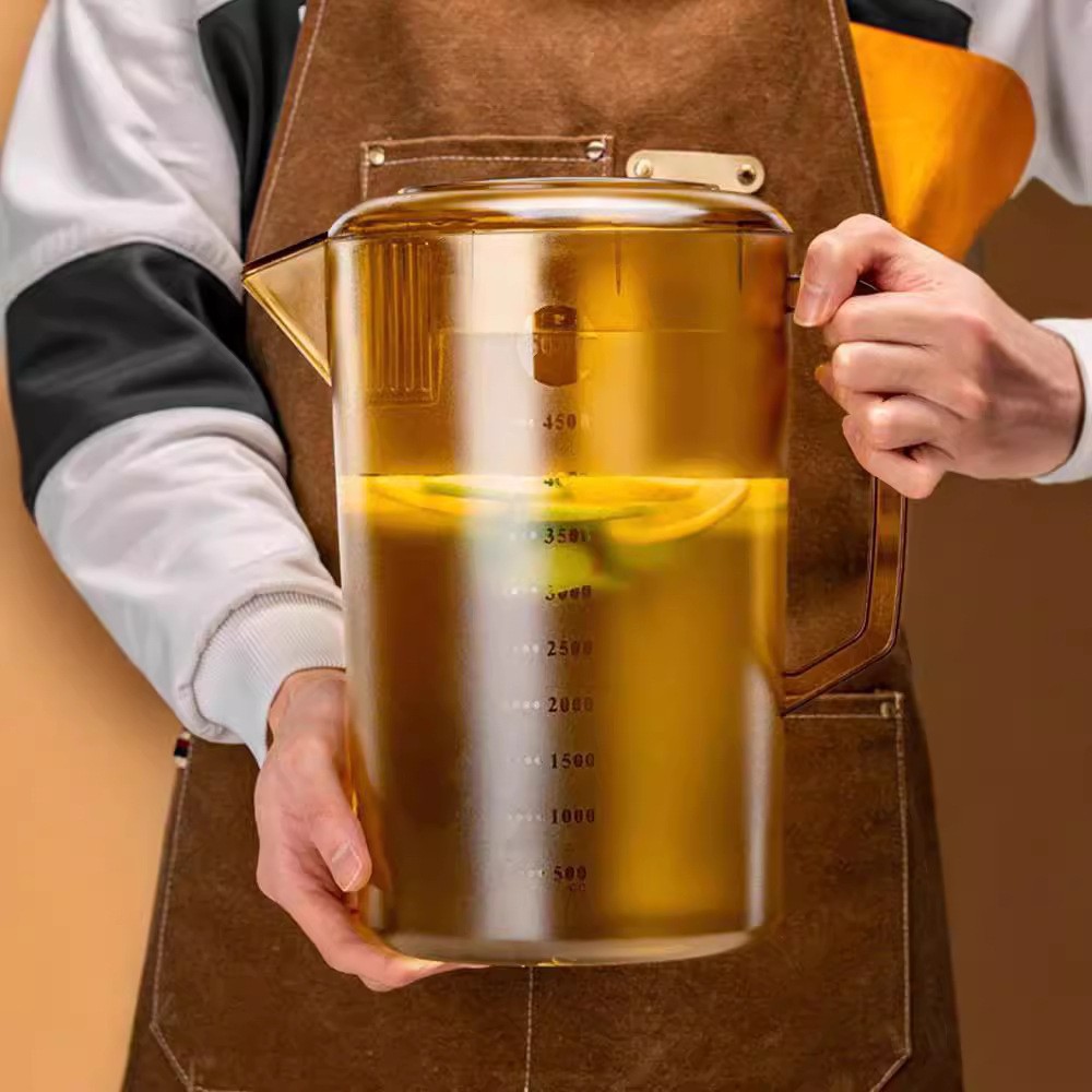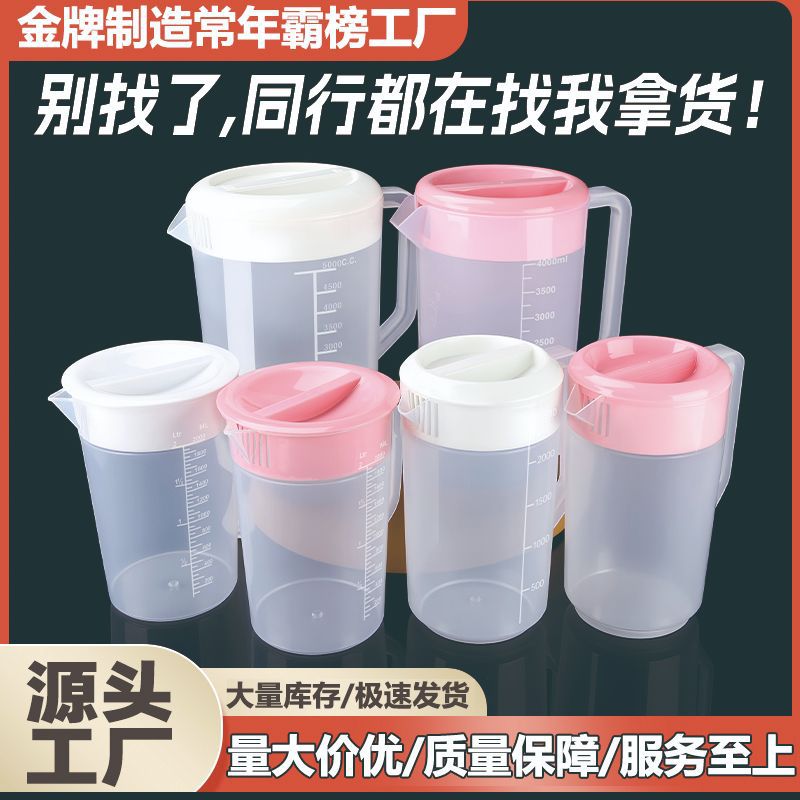 プラスチック製冷水筒、高温耐性、大容量、目盛り付き家庭用計量カップ、冷水筒、業務用冷水筒、ミルクティーショップ用コールドドリンク