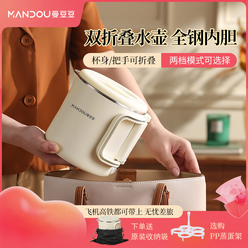マン豆折りたたみ式電気ポットポータブル旅行速熱湯沸かし器小電気鍋家庭用寮煮水筒
