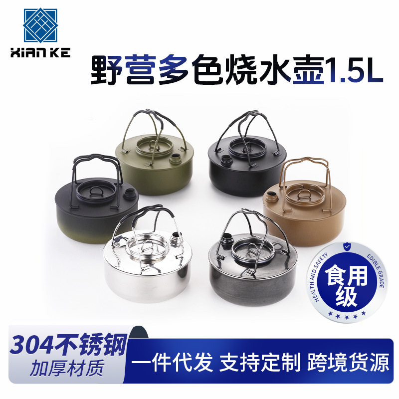 食品級ステンレス家庭用湯たんぽ家庭用キャンプコーヒーポット1.5L携帯屋外キャンプ水筒