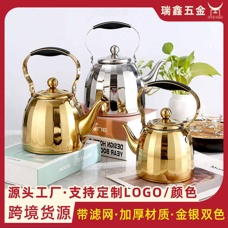 ステンレス製のティーポットやかん業務用レストランホテル食堂のお茶やかんはネットで家庭用のティーポットを落として濾過します。
