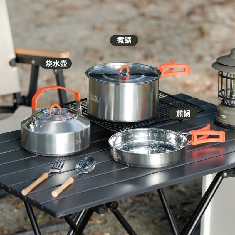 304ステンレスポータブル野外キャンプ湯沸かし器屋外お茶煮水筒キャンプティーポット1.1Lクロスボーダー