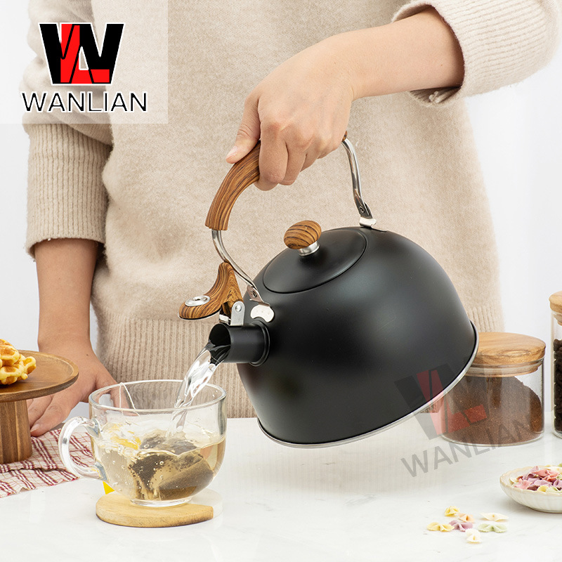 ステンレス鋼ホイッスルケトル木目ハンドルカラフルなヨーロッパスタイルホテルアンティークホイッスルケトル平底ティーケトル