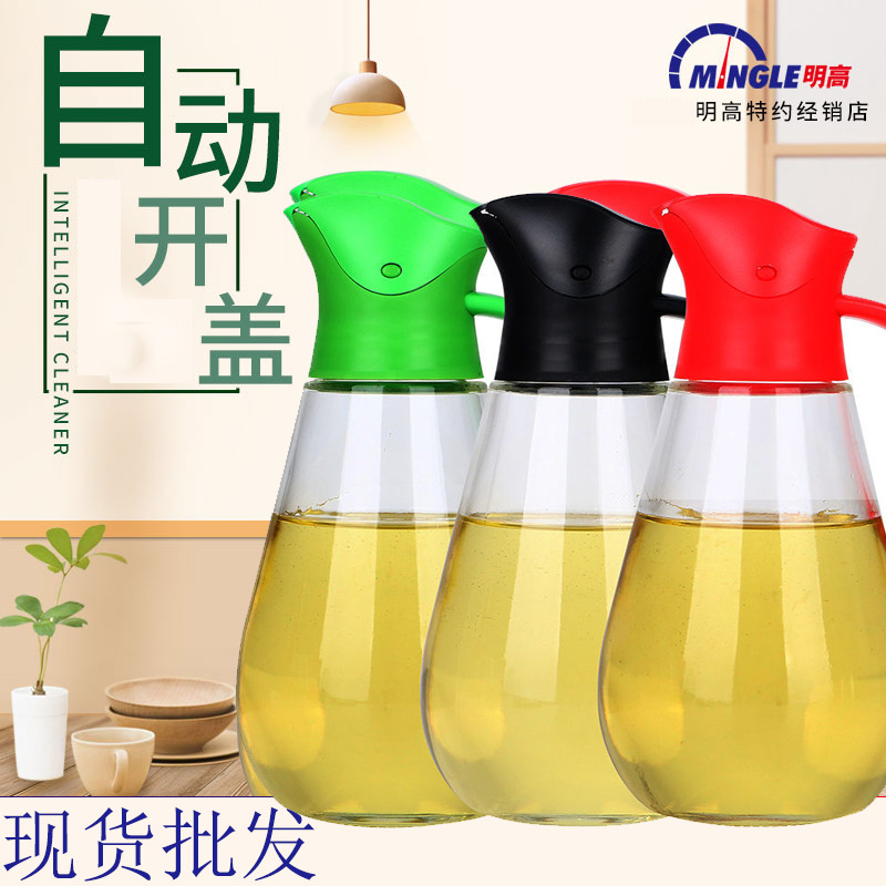 大容量明高オイルポット油がにじまない自動開蓋防塵オイルボトルガラス防塵漏れ防止醤油酢ボトル