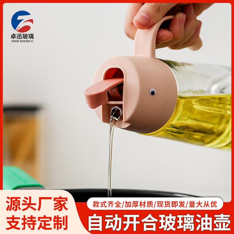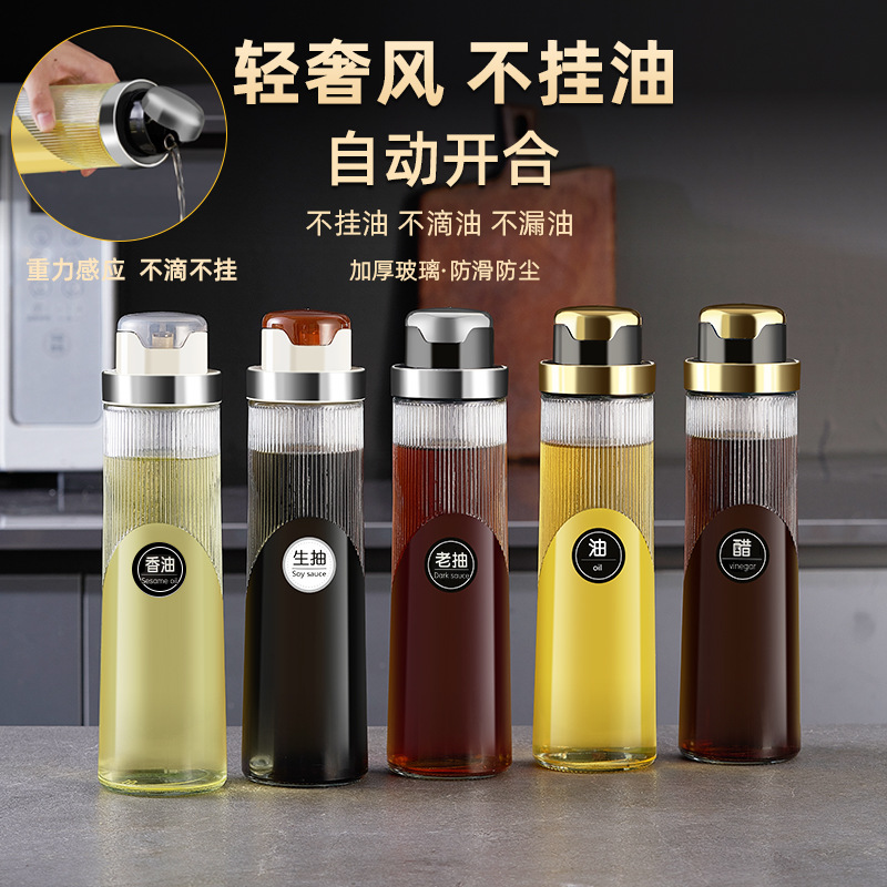 ハルク自動開閉ガラスオイルポットキッチン漏れ防止オイルタンク蓋付き調味料ボトル酢ボトルオイルボトル工場直販