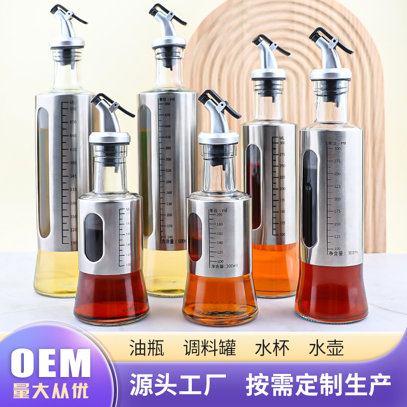 キッチン家庭用ステンレス鋼オイルボトルスケール付き家庭用オイルポット密封されたガラスオイルボトル漏れのない醤油酢ボトル