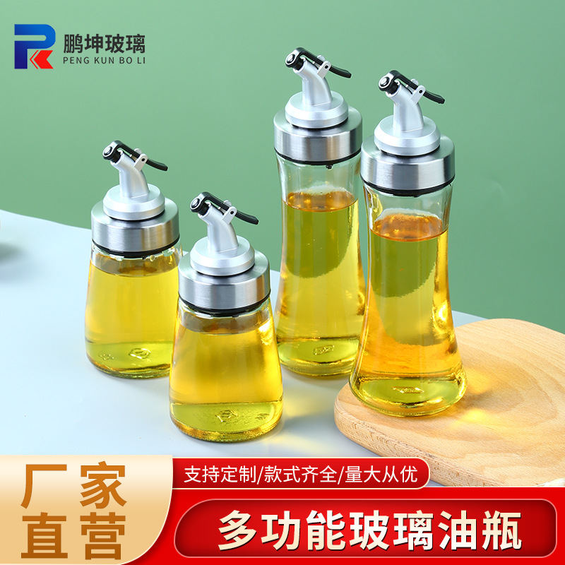 ガラス油壺家庭用キッチン醤油酢調味料瓶自動開閉油タンク油間噴霧油瓶二合一